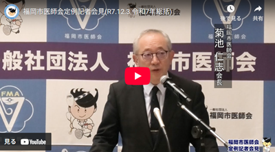 2025年12月11日 / 最終更新日時 : 2025年12月16日 福岡市医師会 会見動画 令和7年12月3日 定例記者会見 詳細はこちら 令和7年総括 福岡市医師会 会長 菊池 仁志 感染症動向と予防接種 福岡市医師会 常任理事 植山 奈実 産業医と事業所のマッチング事業 福岡市医師会 常任理事 牟田 浩実