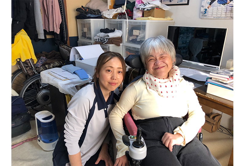 愛用の歩行器で屋外の歩行訓練です 家族とお出かけするのが目標です 理学療法士のK.Y